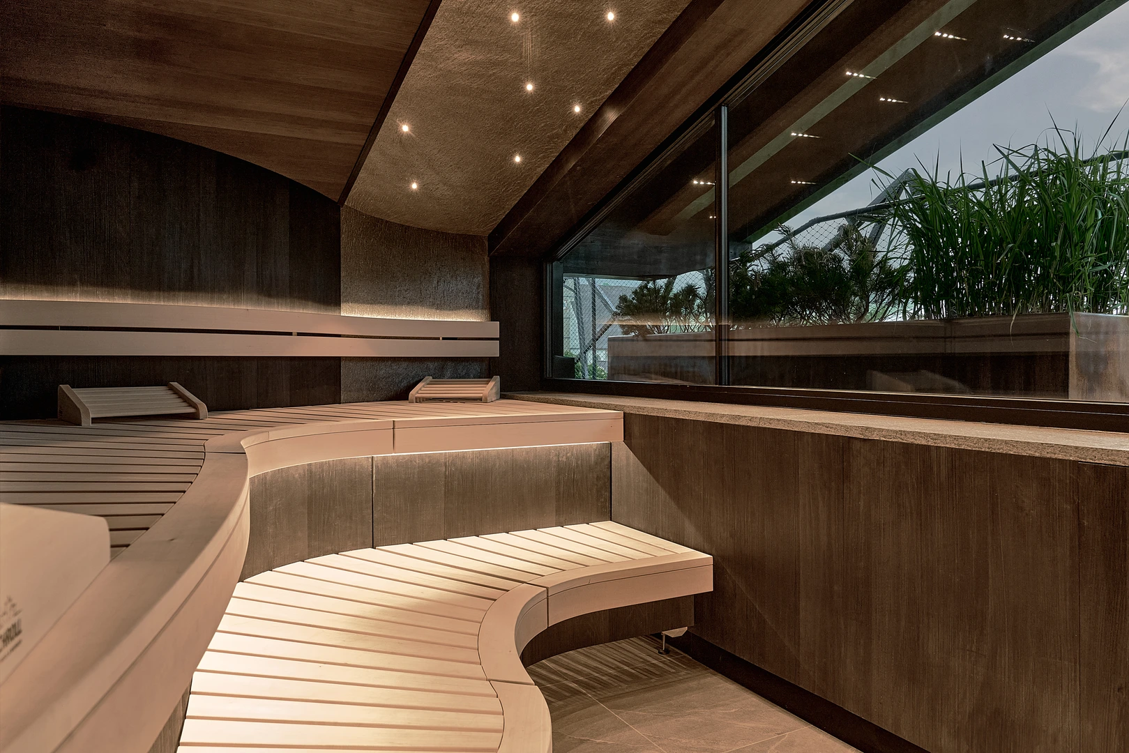 Das TIARA SPA, eigens nur für Erwachsene, liegt als „Krönung des Wohlbefindens“ über den Dächern von Maria Alm. Innenarchitektonisch bestimmen Altholz, dunkle Akzente, Marmorflächen und schimmernde Details das Bild. Herzstück ist ein Relaxpool mit Panoramablick, ergänzt um eine stylische Finnische Sauna, Rückzugsnischen und Sonnenterrassen. Der Adults-only-Charakter schärft den Fokus auf Stille, Aussicht und wohldosierte Aufguss-Rituale.