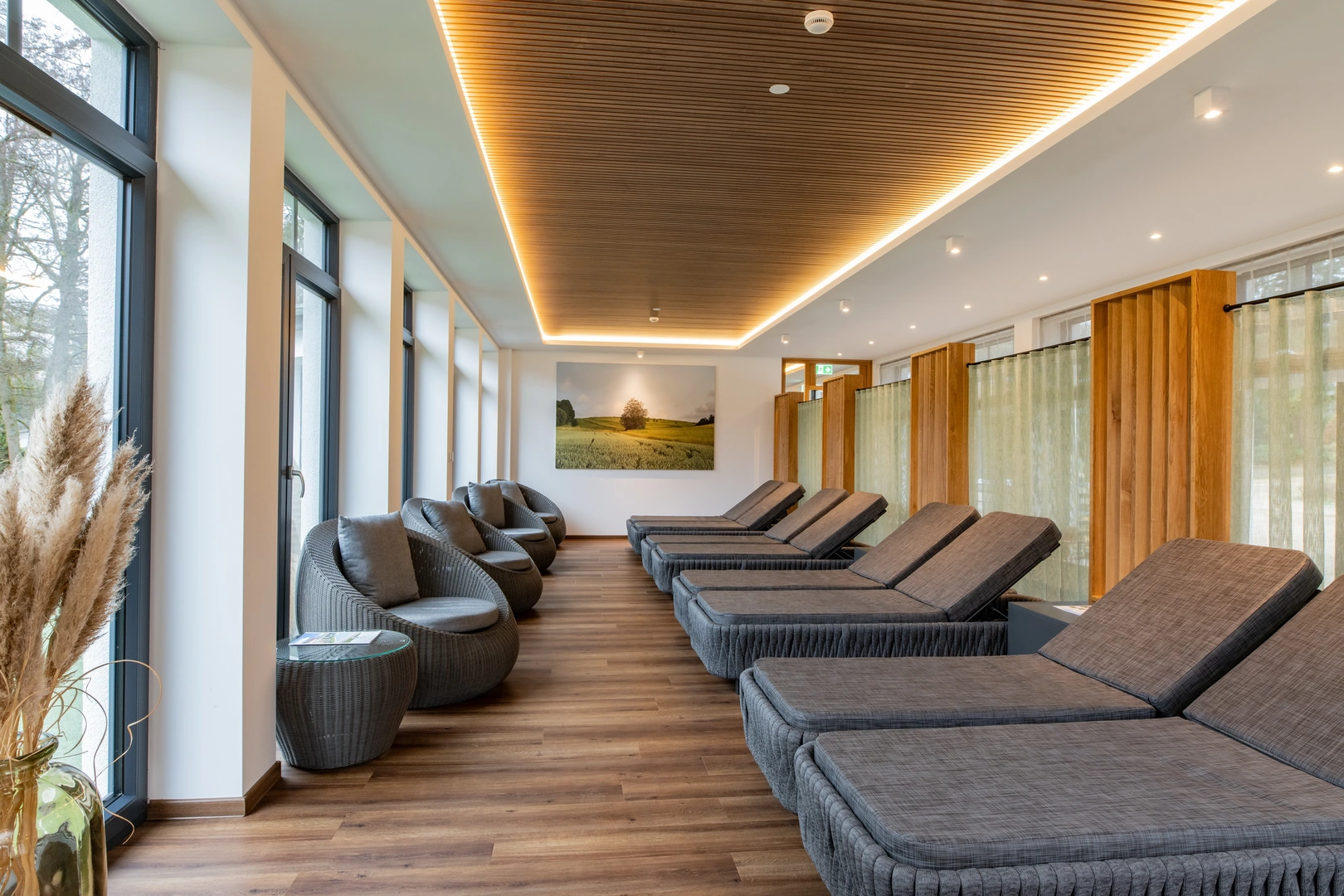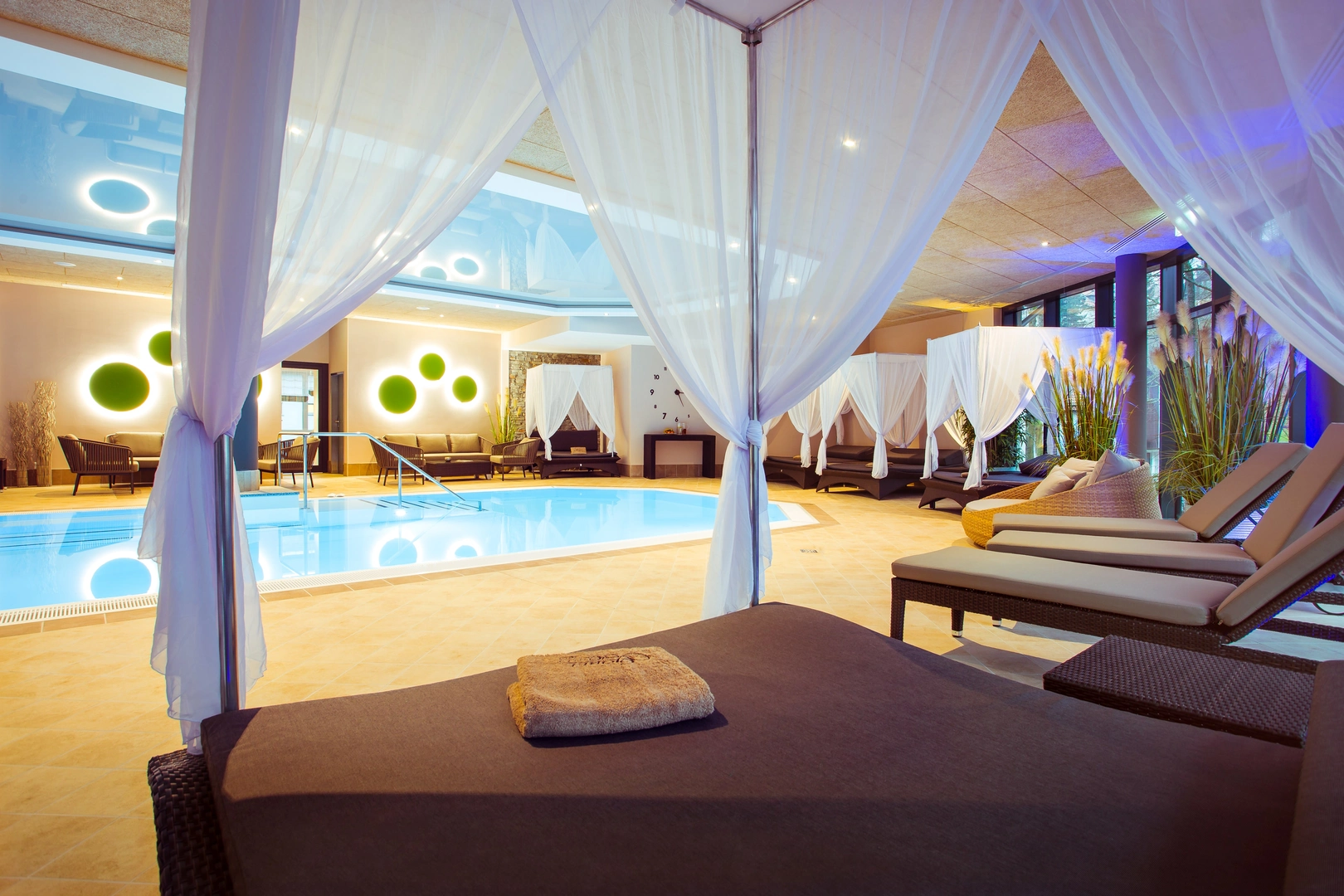 Der Wellnessbereich „Vitalis SPA“ versammelt Schwimmbadlandschaft mit Innen- und Außenpool, Saunalandschaft (finnische Sauna, Sanarium, Dampfbad) sowie Ruhebereiche indoor & outdoor. Ergänzend werden Aromabäder, Massagen und Beauty-Anwendungen angeboten; Bademantel und Tücher stehen bereit. Ein Fitnessraum mit modernen Cardio-Geräten rundet die Erholungsroutine sportlich ab.