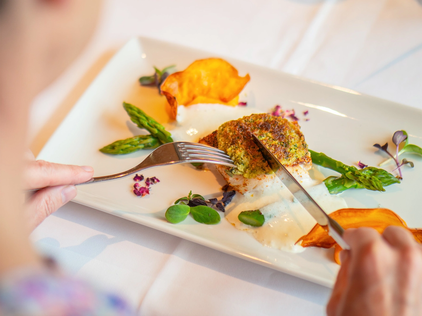 Die kulinarische Linie der Wälderin ist regional verankert und saisonal gedacht. Die Verwöhnpension umfasst ein umfangreiches Frühstücksbuffet als „perfekter Start in den Tag“, eine Mittagsjause in Buffetform sowie eine abendliche Fünf-Gänge-Genussauswahl. Zum Abend gehören kreative Vorspeisen, frische Salate, Suppe, regionale Käsespezialitäten vom Buffet, Wahlhauptspeisen und Desserts. Die Lobby, Bar und Sonnenterrassen dienen tagsüber als Café-Zone, Kaffee, Kuchen, Eis – und am Abend als Treffpunkt in entspannter Atmosphäre.