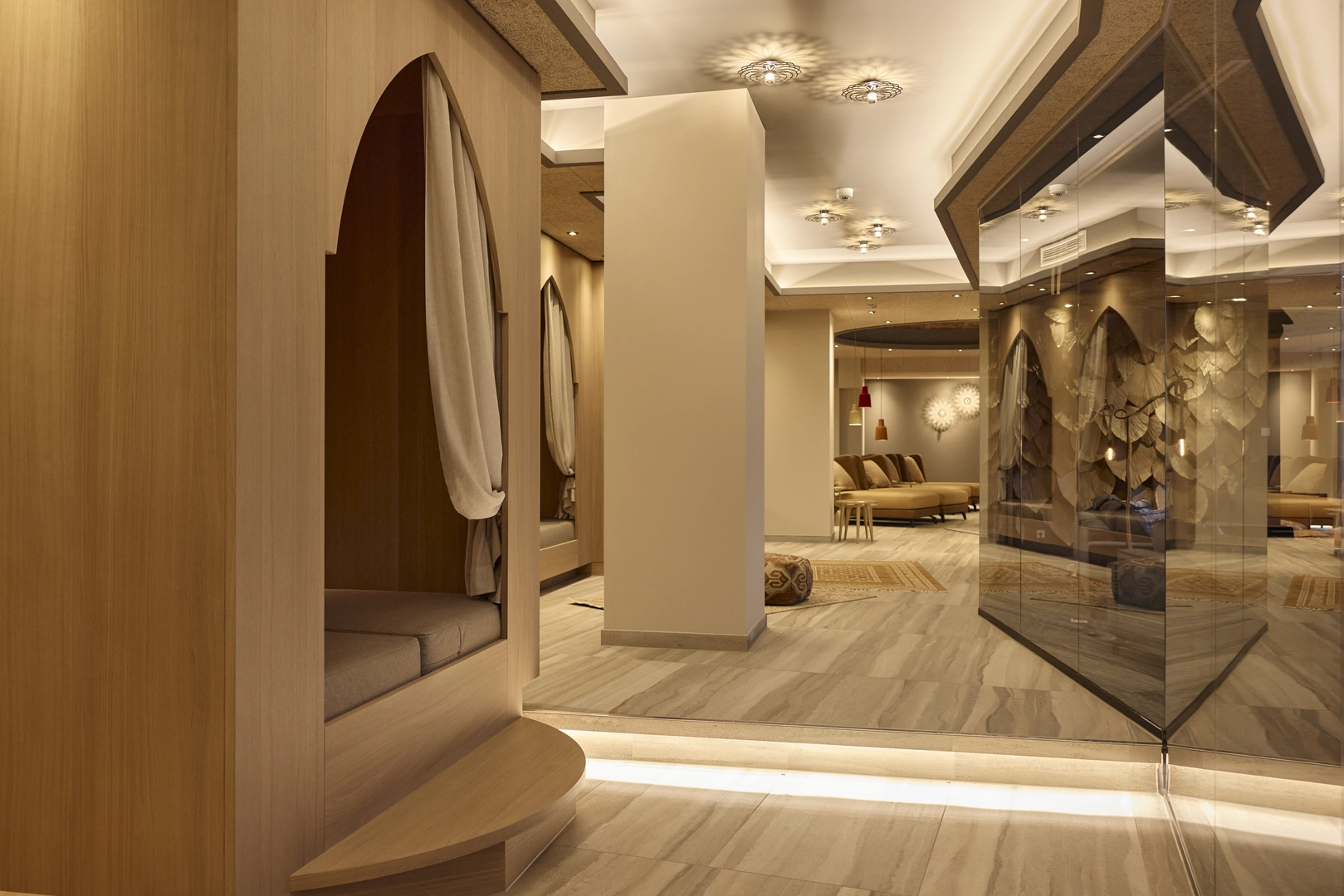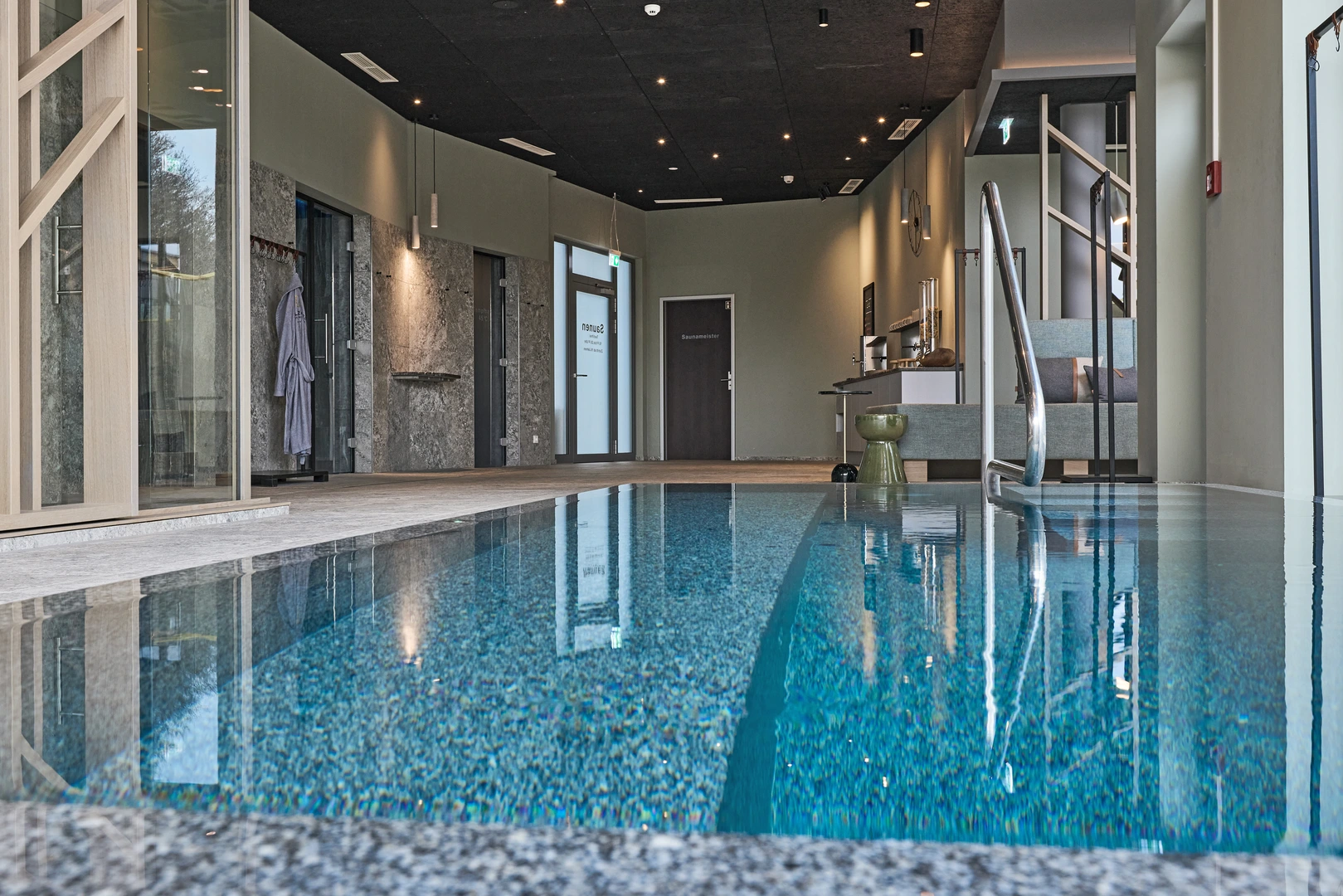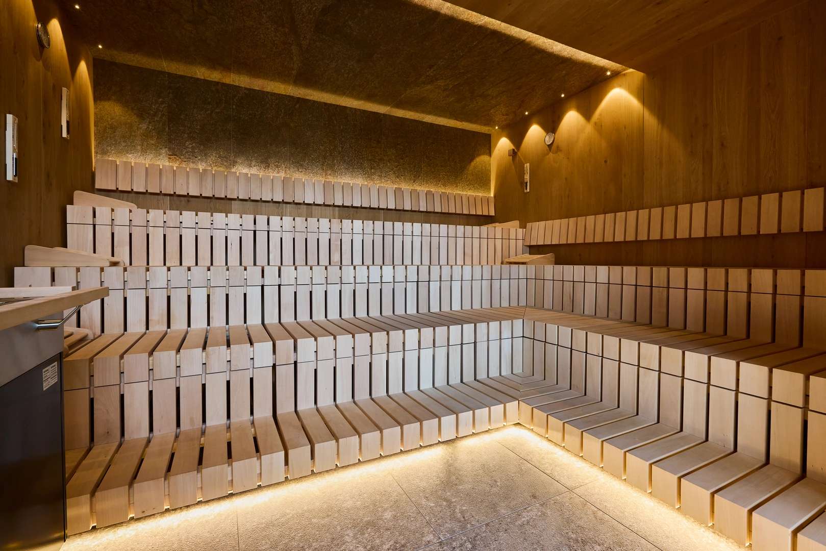 Der großzügige Saunabereich bietet eine Eventsauna, eine Biosauna, ein Tepidarium, eine Entspannungssauna sowie Dampfbäder, Kälteraum und Tauchbecken. Sechs individuell gestaltete Ruheräume und ein Wärmeraum schaffen perfekte Rückzugsorte.