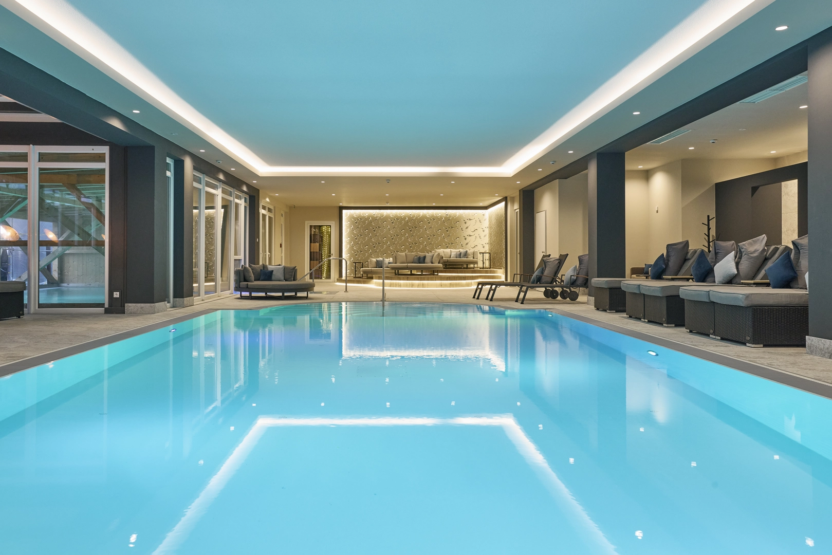 Gäste erwarten zwei hauseigene Thermalbecken im Innen- und Außenbereich sowie der direkte Zugang zur Therme Eins über den Bademantelgang. Highlights sind zudem ein Schwimmerpool im Garten und ein Rooftoppool mit eindrucksvollem Ausblick.