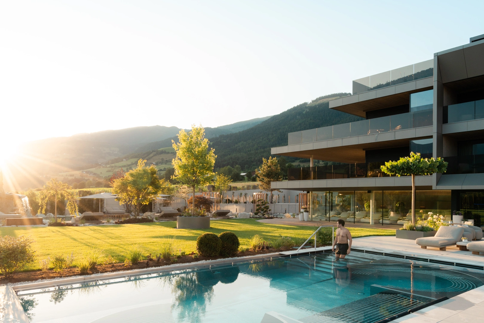 Im Pustertal, oberhalb von Bruneck, positioniert das Hotel SOLVIE seinen Luxus bewusst leicht: weitläufige Gartenflächen, Blickachsen zu den Dolomiten und ein Spa, das Adults-only-Rückzug und familienfreundliche Zonen trennt. Die Jury würdigt die klare Wellness-Dramaturgie mit Relax-only Skypool, Adults-only SOLVIE Spa und kuratierten Focus Programs von Deep Relax bis Longevity, jeweils bedürfnisorientiert, holistisch und planbar.