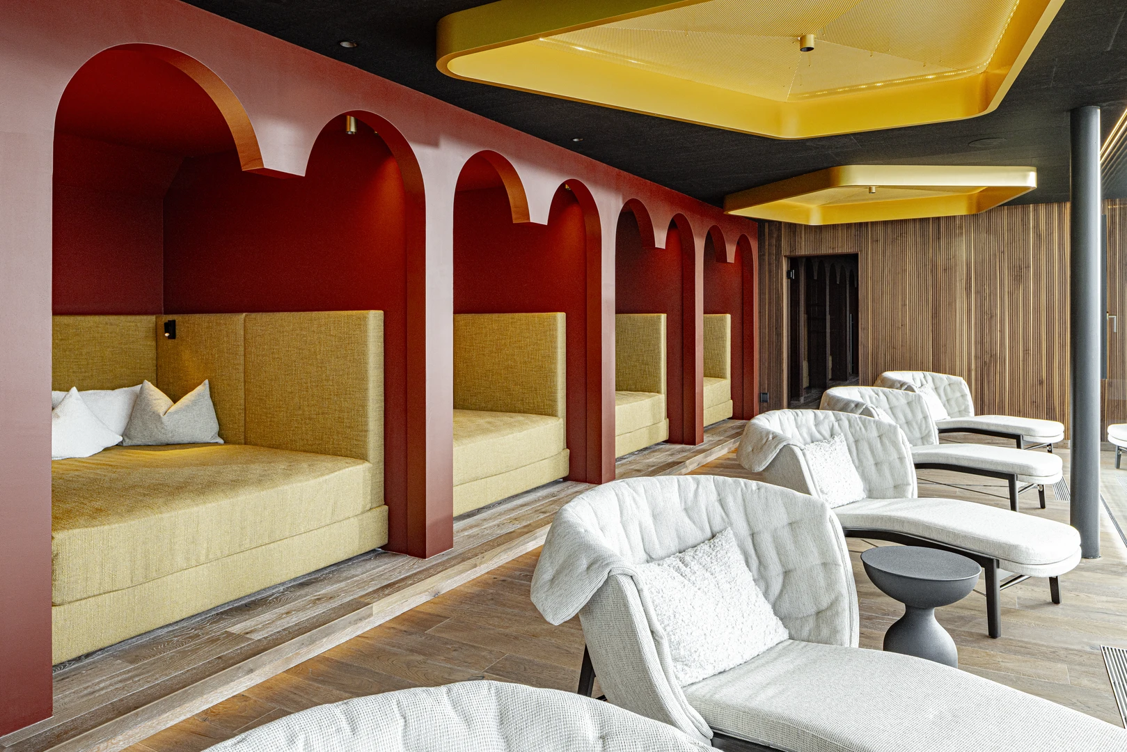 Die Treatments greifen alpine Kräuter und duftende Öle auf; Private-Spa-Angebote ermöglichen Rückzug in geschütztem Rahmen. Ein Gym ergänzt den regenerativen Ansatz um Bewegung und Kräftigung.